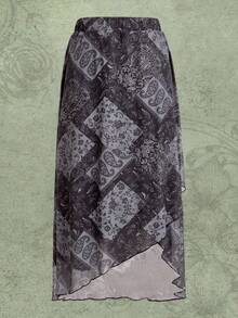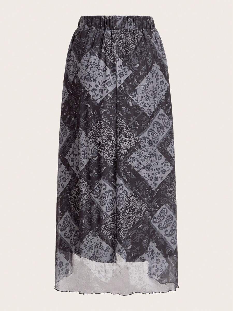 Paisley Print Lettuce Trim Mesh Skirt
