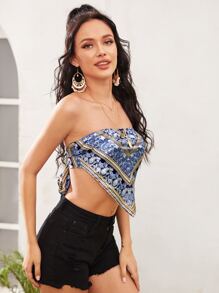 Paisley Print Self-Tie Bandana Tube Top
