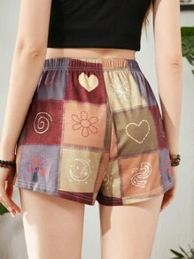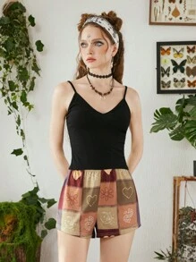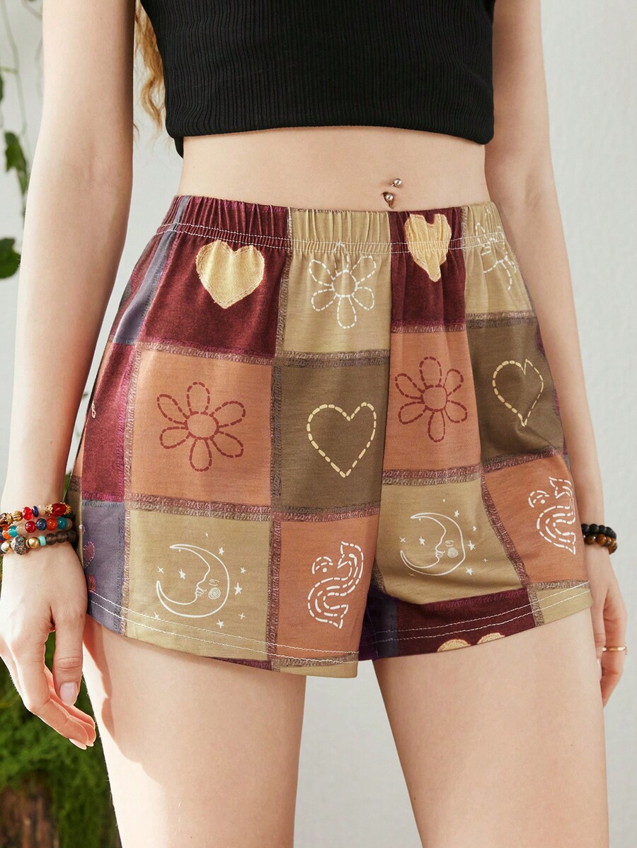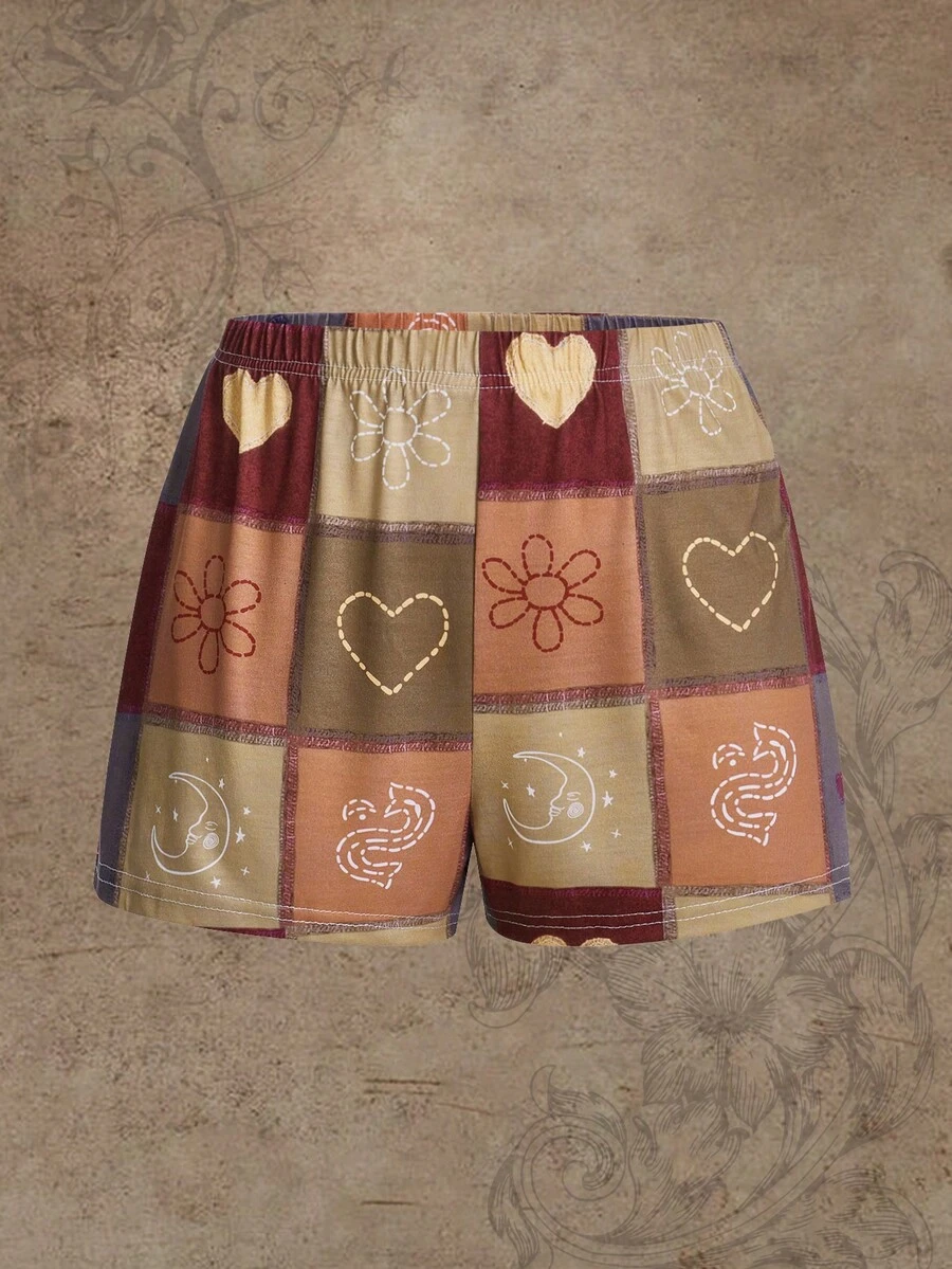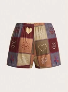 Hippie Patchwork Graphic Sleep Shorts