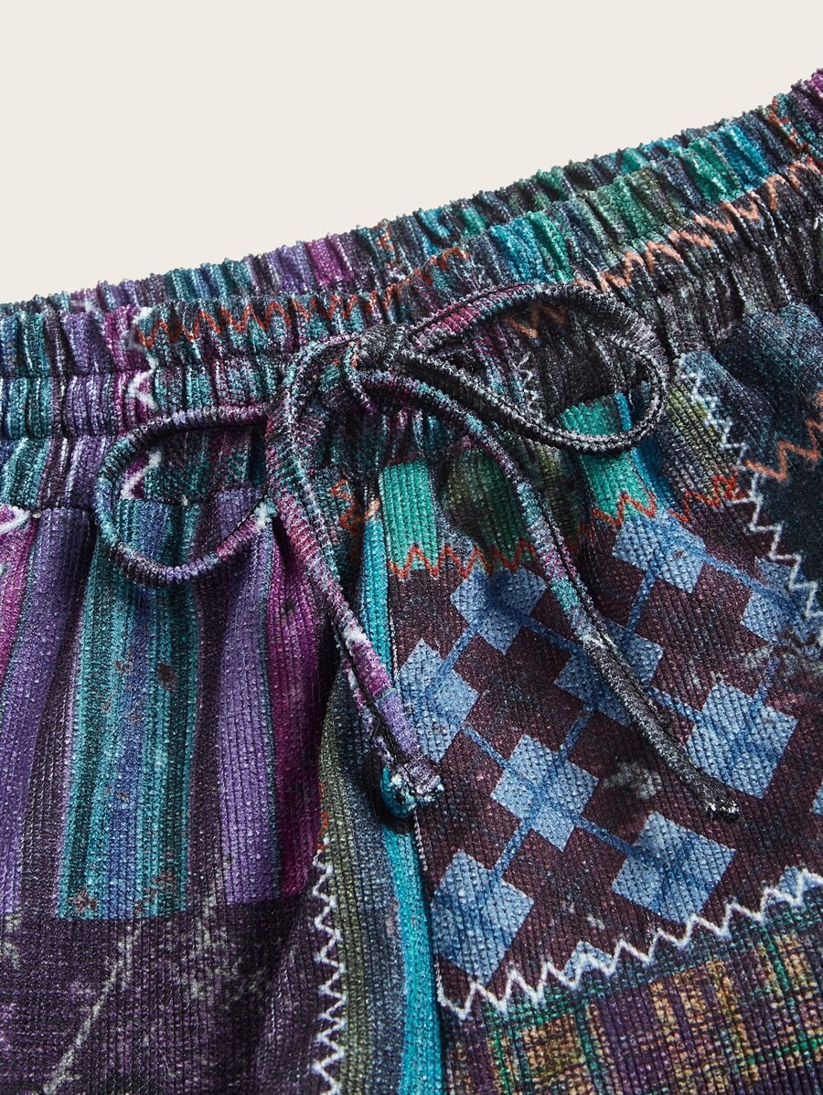 Patchwork Print Drawstring Waist Flap Pocket Side Cargo Pants