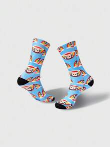 Paul Frank X ROMWE 2 Pairs Cute Monkey Cartoon Pattern Crew Socks For Women, Suitable For Daily Commute, Shopping, Travel, A Great Gift Choice