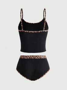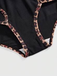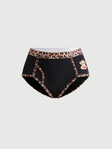 Paul Frank X ROMWE Contrast Leopard Binding Cartoon Monkey Print Camisole And Thong Underwear Set