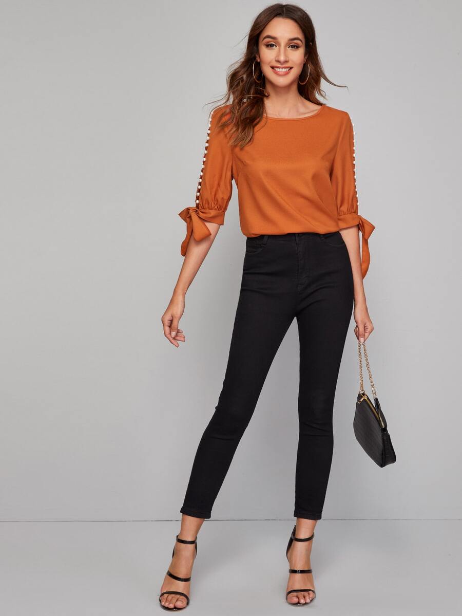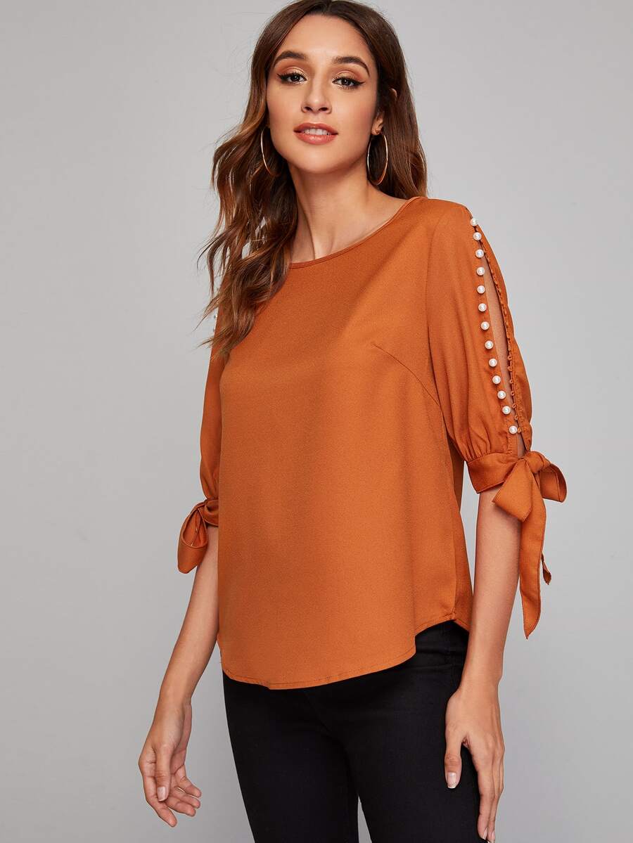 Pearls Split Sleeve Knot Cuff Top