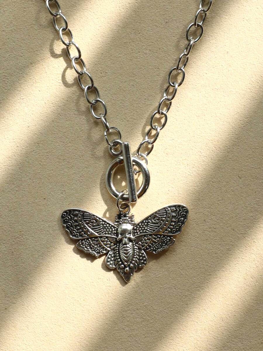 Skull Decor Butterfly Charm Necklace