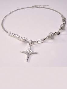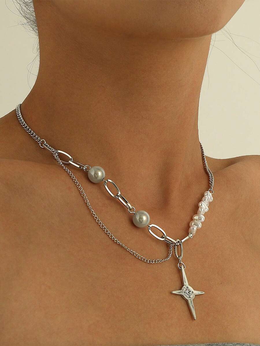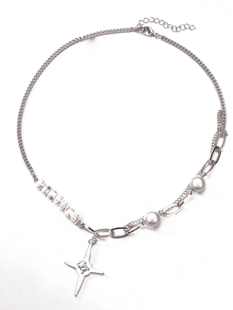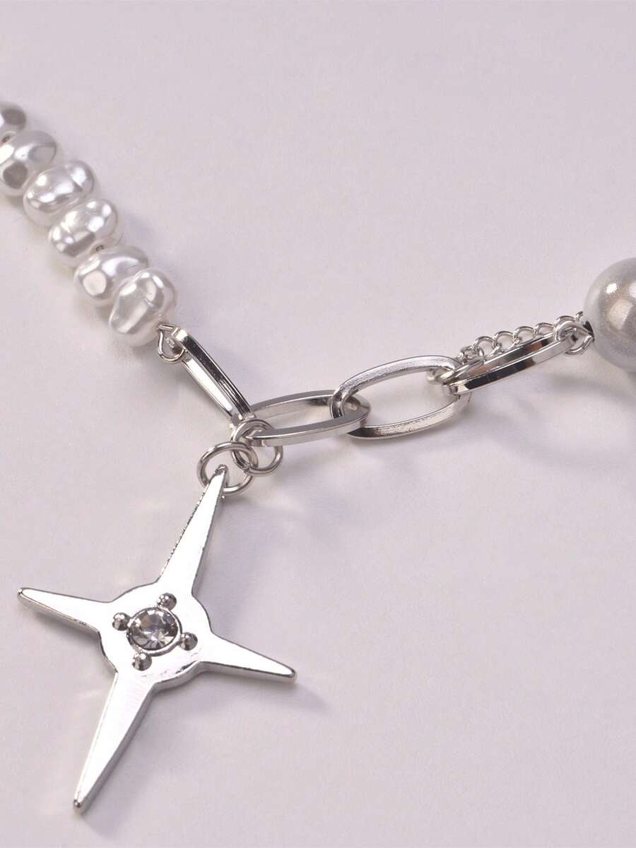 1pc Fashion Iron Alloy Faux Pearl Decor Star Charm Necklace For Women For Daily Decoration