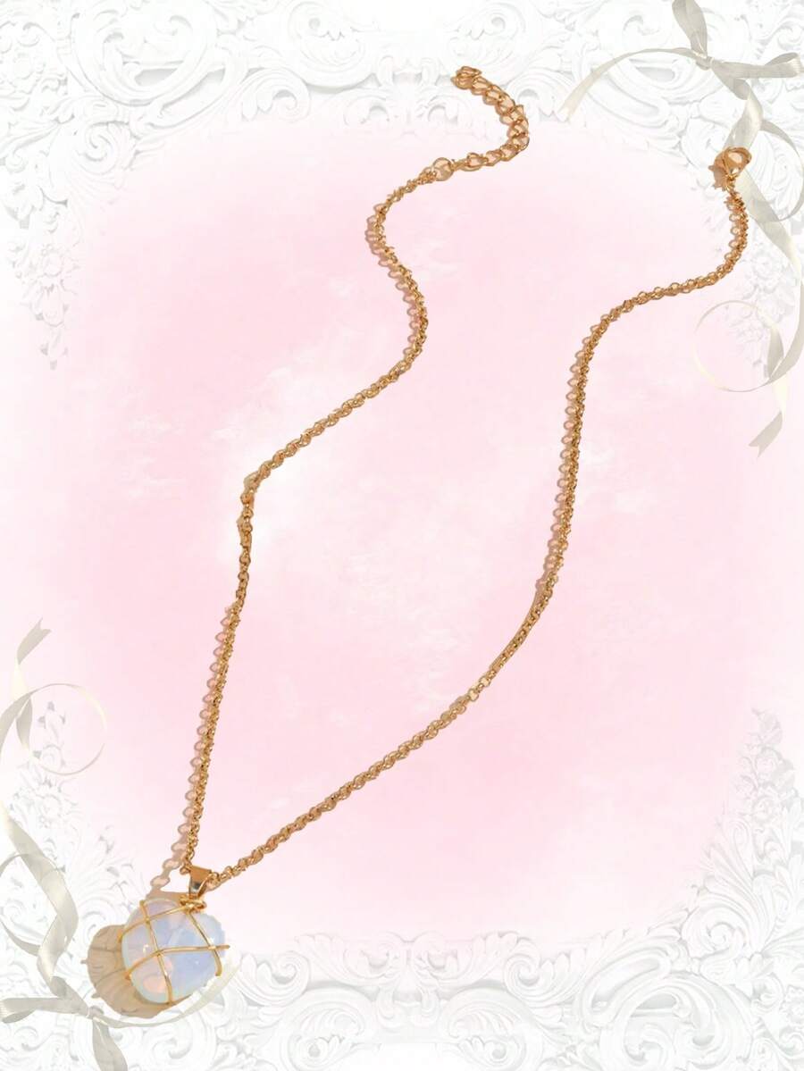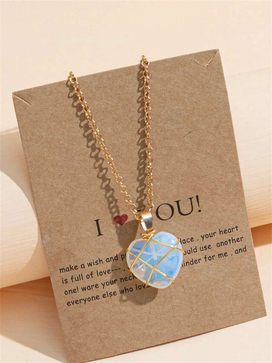 Sweetness 1pc Fashion Iron Alloy Heart Stone Pendant Necklace For Women For Daily Decoration