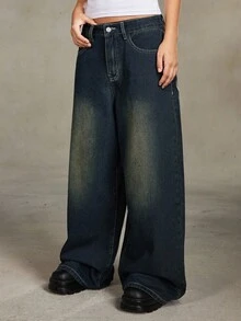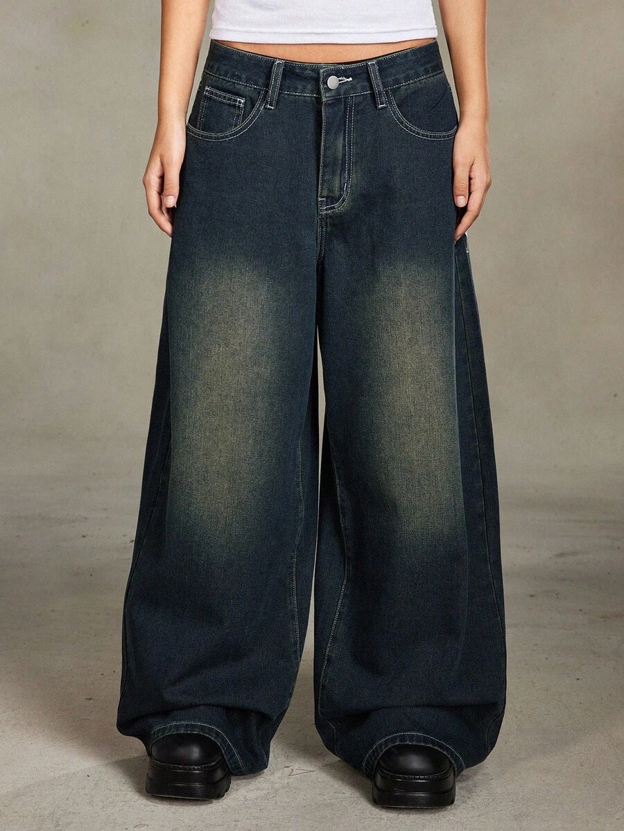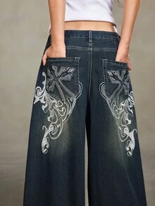 PETITE Petite Punk Distressed Cross & Vine Washed Oversized Straight Leg Extra Long Jeans