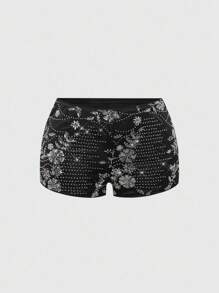 Hippie Pink Shiny Sequin Y2K Sexy Super Low Waist Mini Shorts For Women, Summer Beach