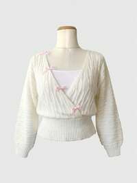 Kawaii Casual Bow-Tie Shoulder Plus Size Sweater