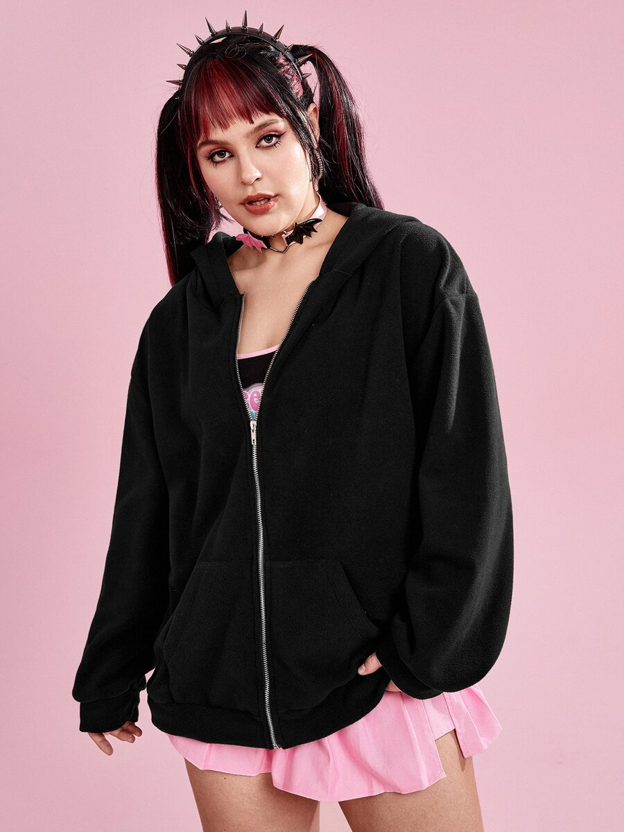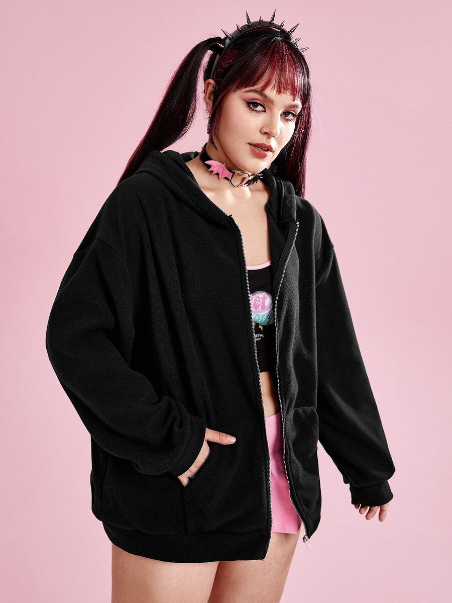 Kawaii Plus 3D Ear Patched Zip Up Hooded Teddy Jacket