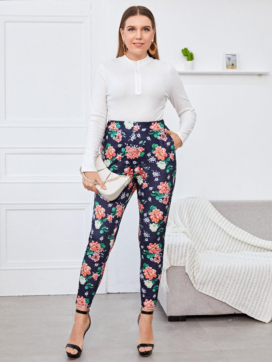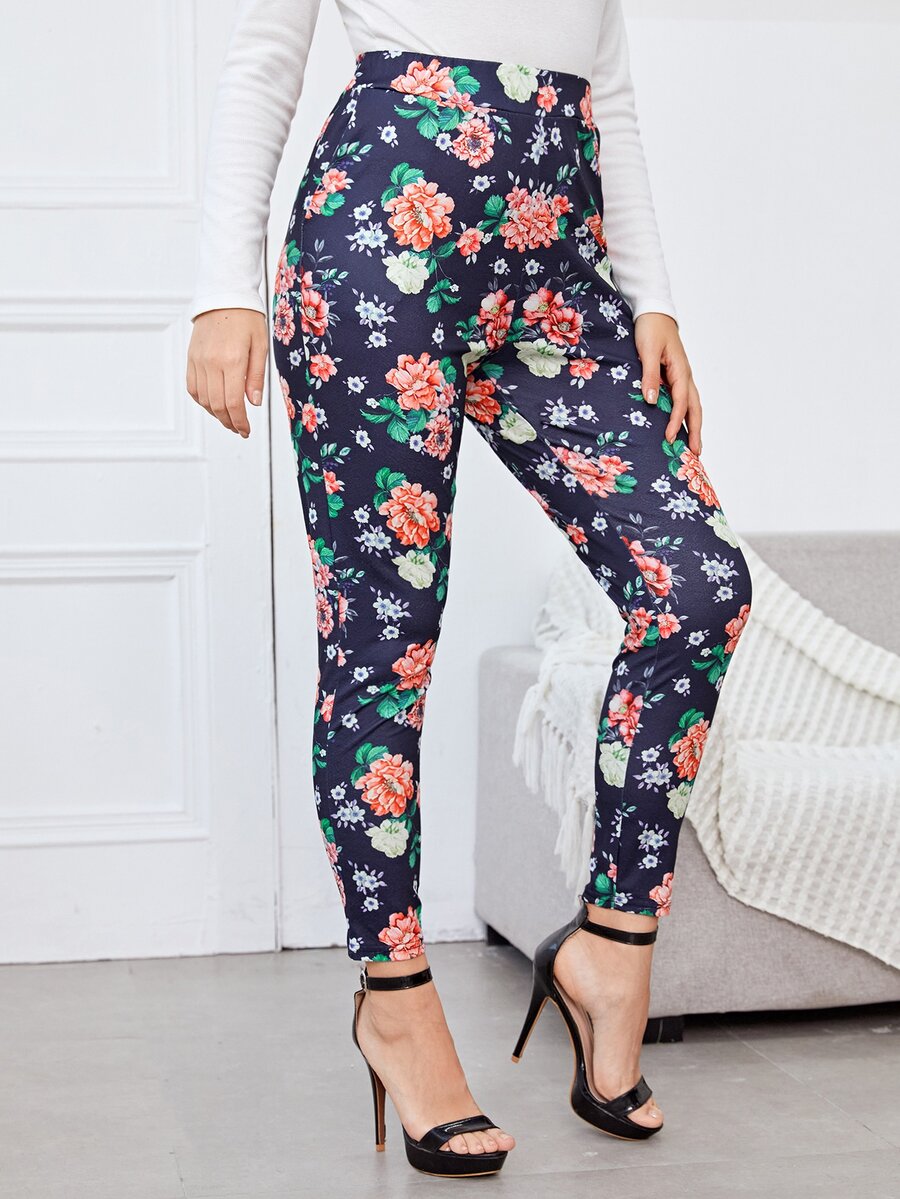 Plus All Over Floral Print Slant Pocket Skinny Pants