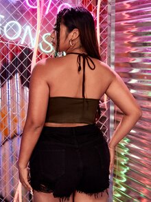 Plus Bandana Hem Crisscross Tie Backless Crop Halter Top