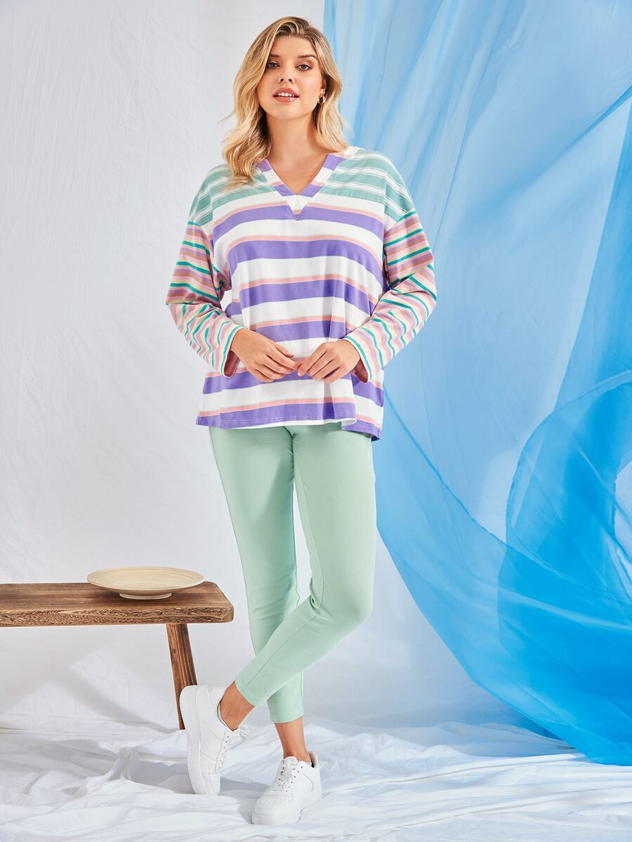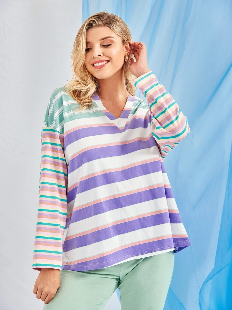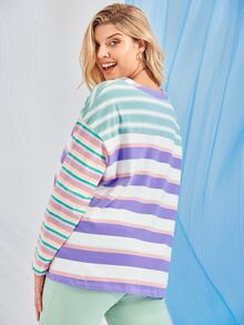 Plus Block Striped Drop Shoulder Tee