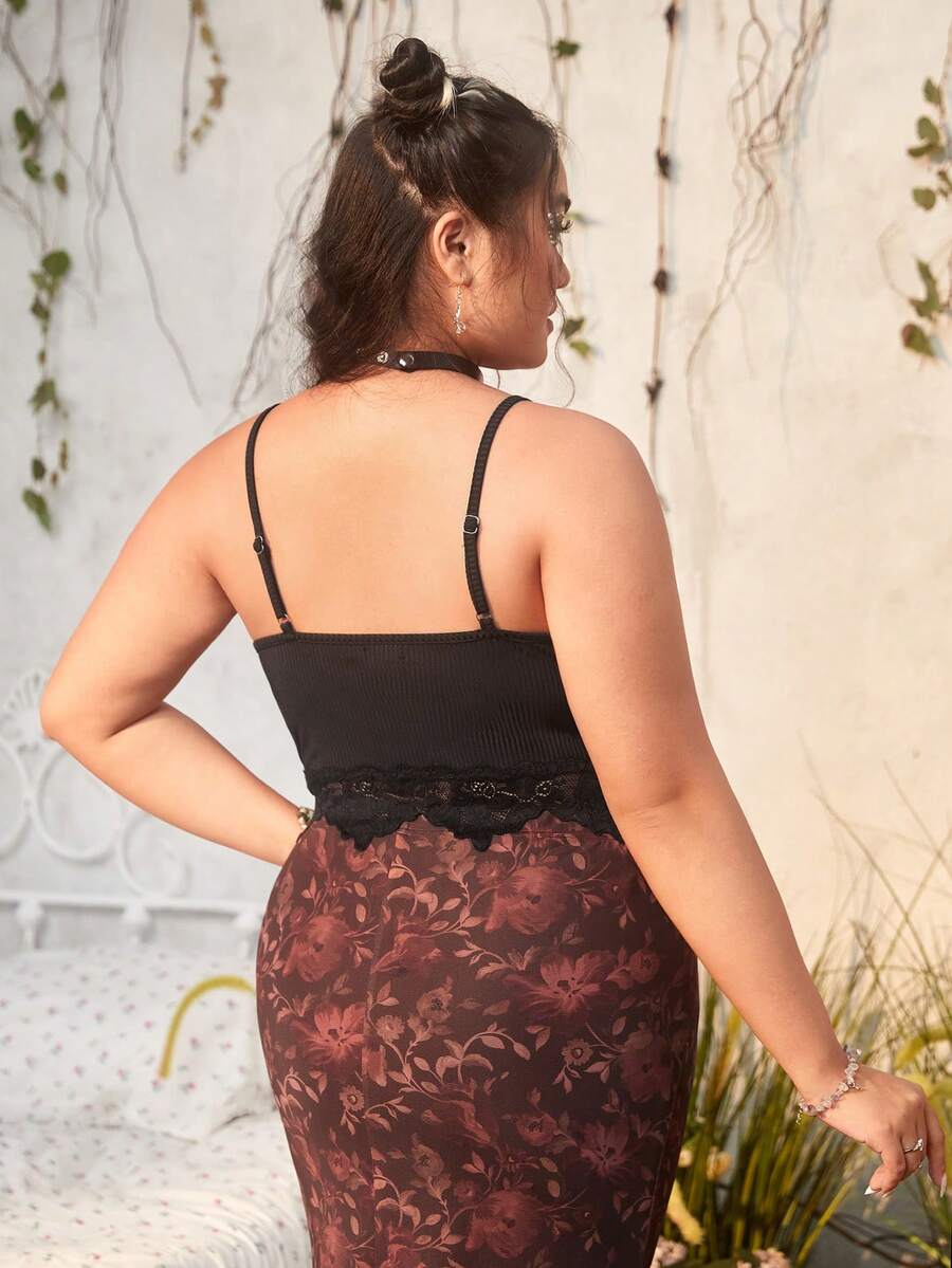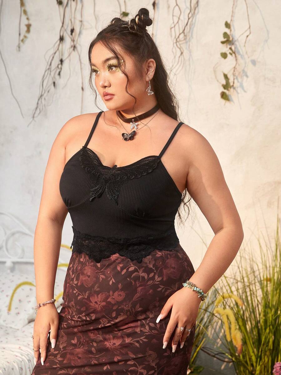 Fairycore Plus Butterfly Appliques Contrast Lace Cami Top