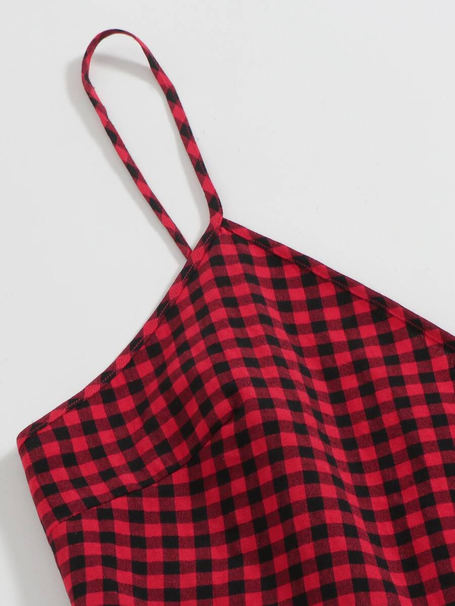 Plus Buttoned Front Gingham Slip Dress