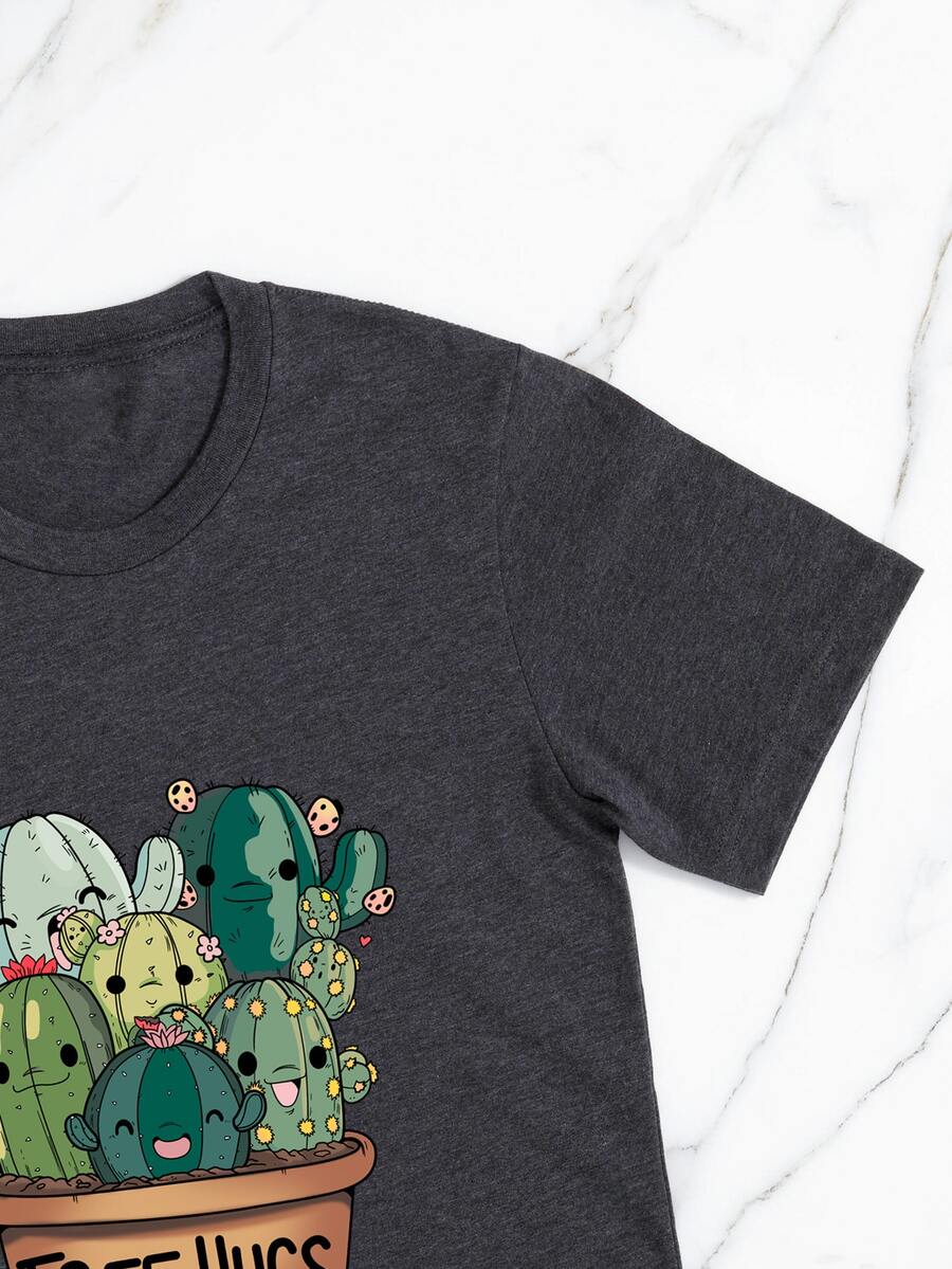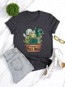 Plus Cartoon Cactus & Letter Graphic Tee