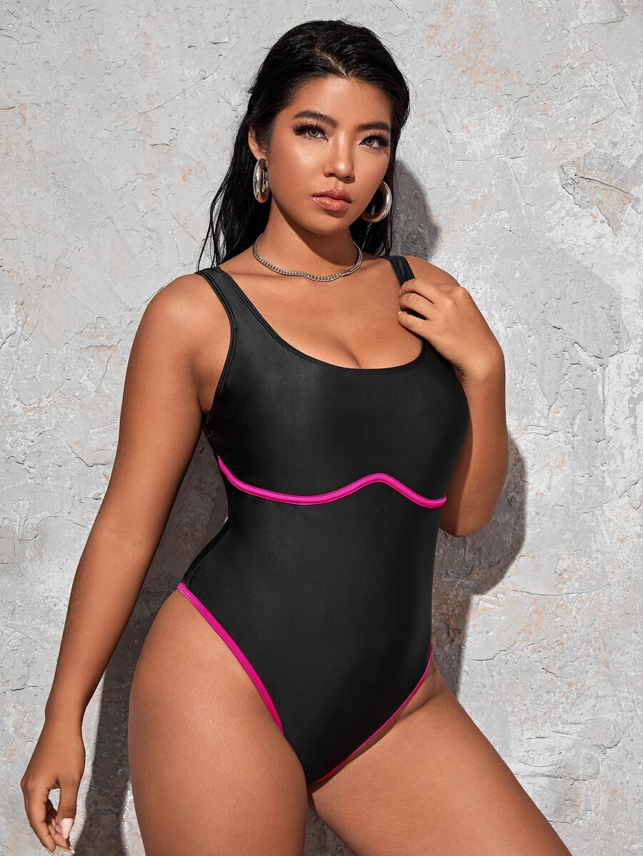 Plus Contrast Binding One Piece Swimsuit