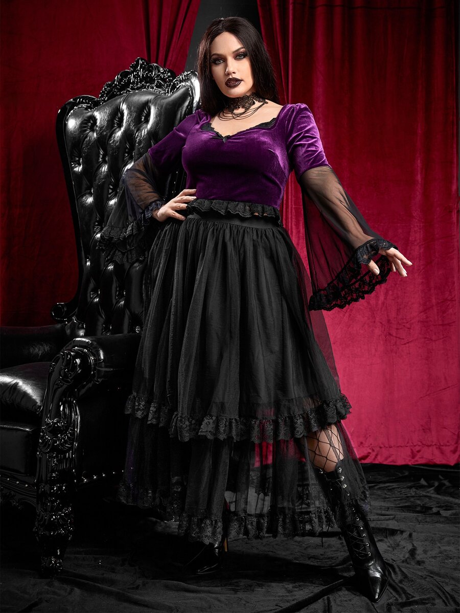 Plus Contrast Lace Ruffle Hem Mesh Skirt