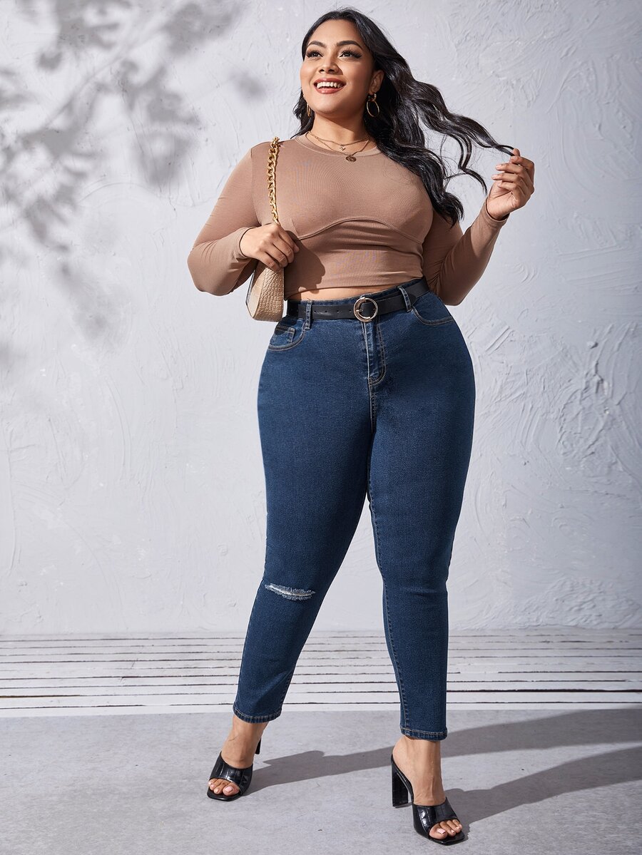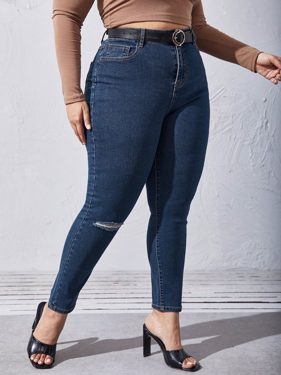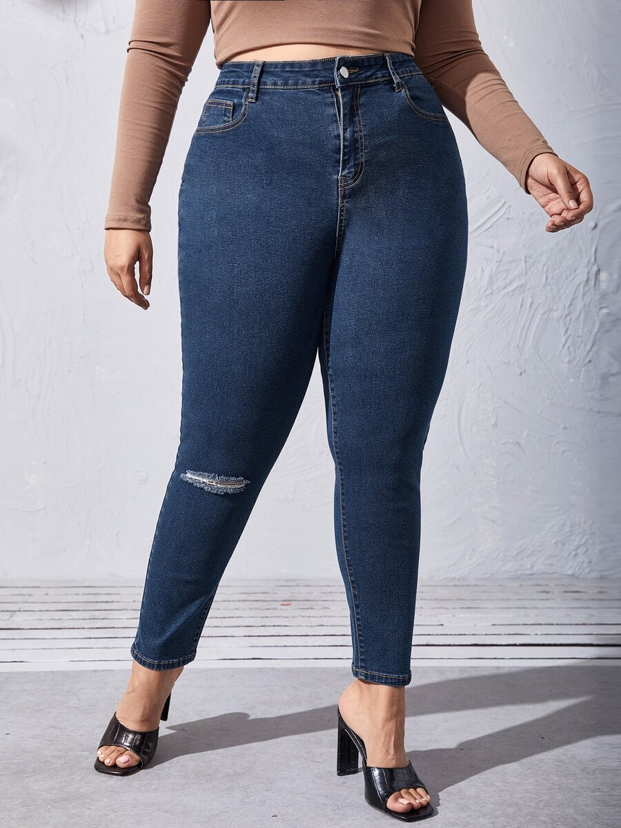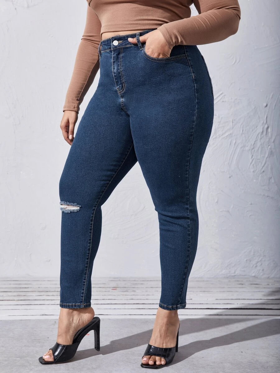Plus Curvy High Waist Ripped Skinny Jeans