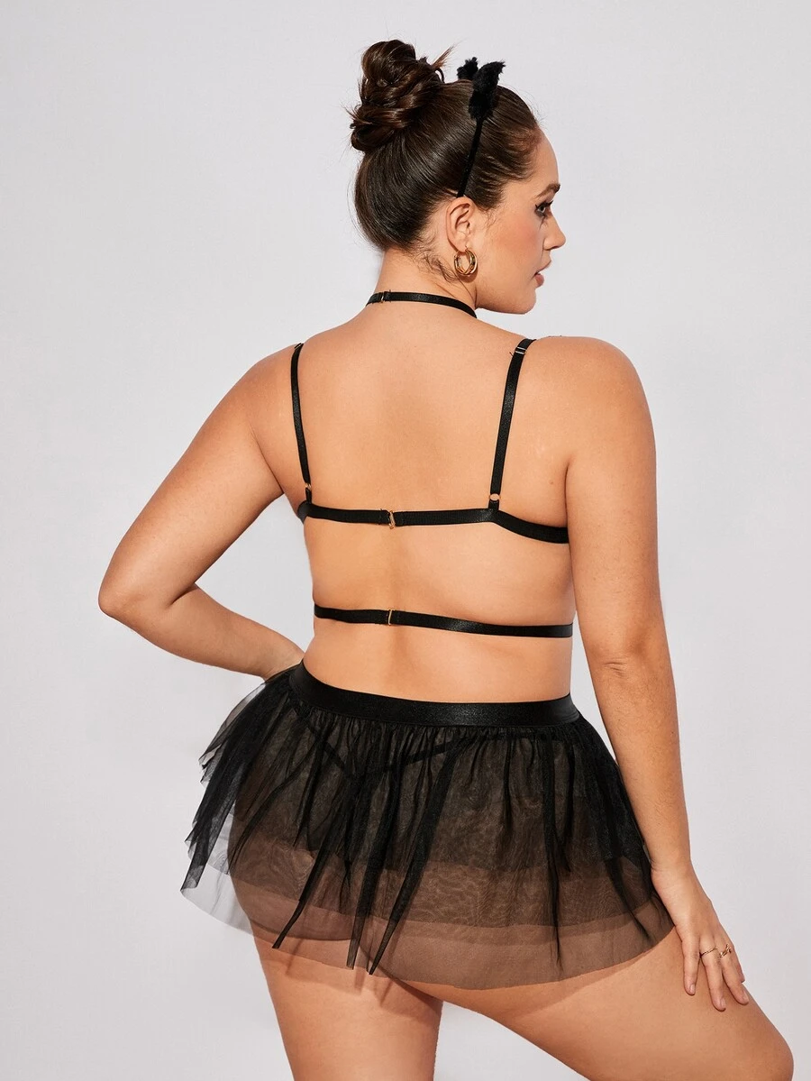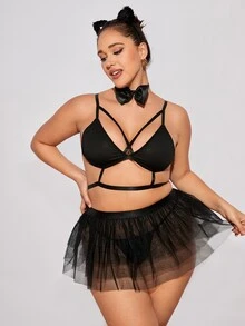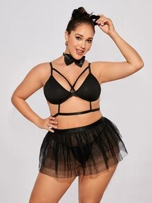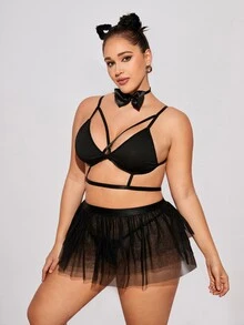 Plus Cut-out Harness Costume Set With Skirt & Bow Tie