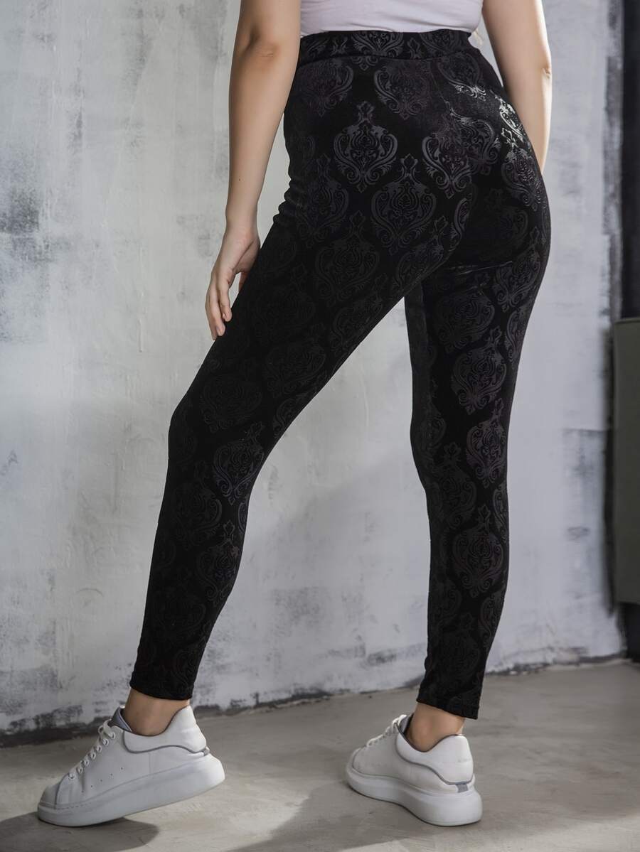 Plus Damask Velvet Leggings
