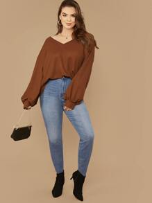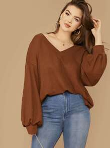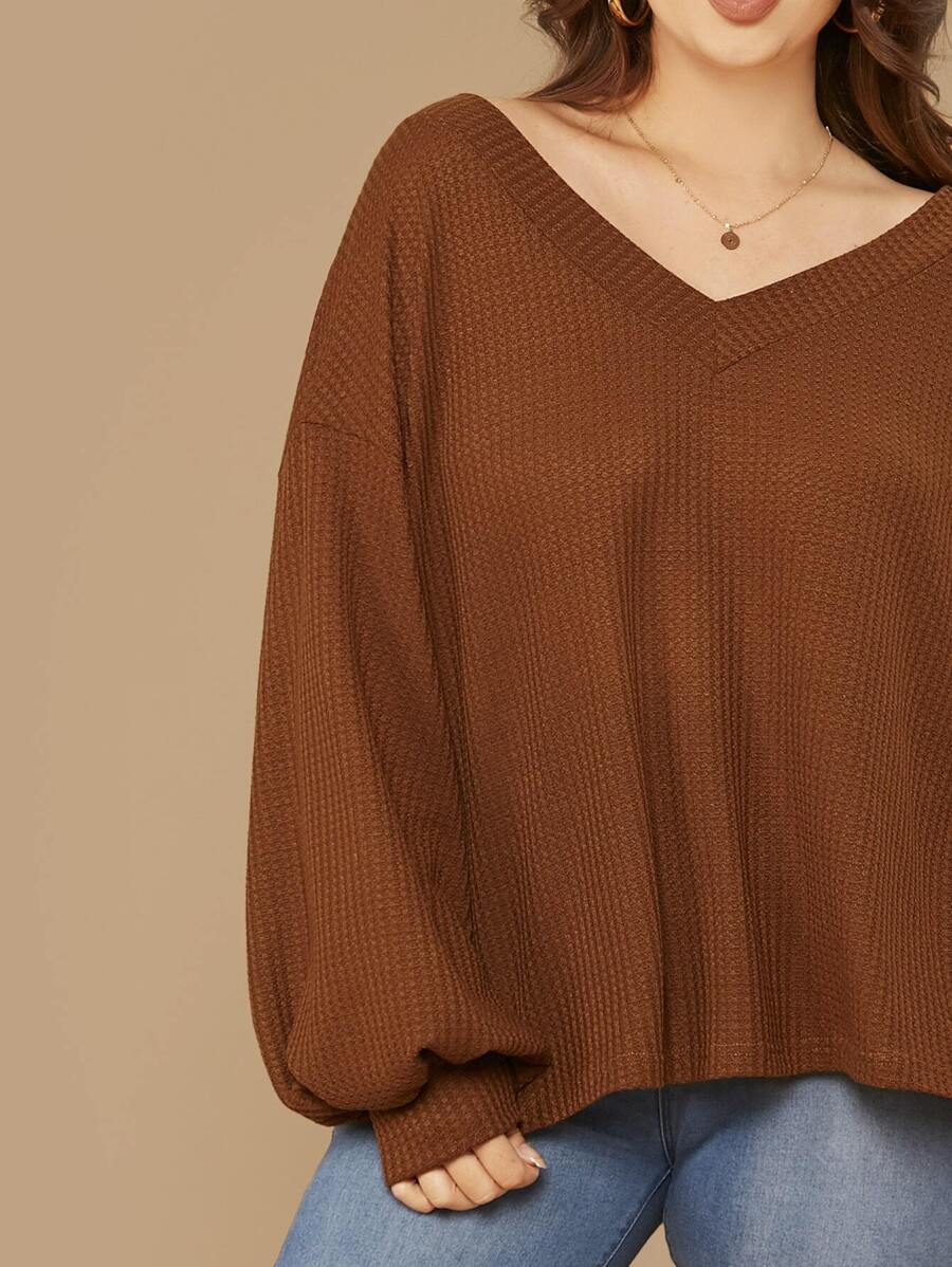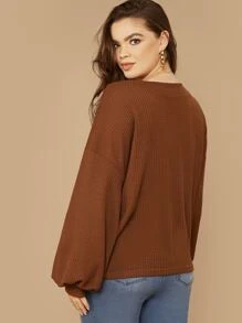 Plus Drop Shoulder Lantern Sleeve Waffle Knit Top