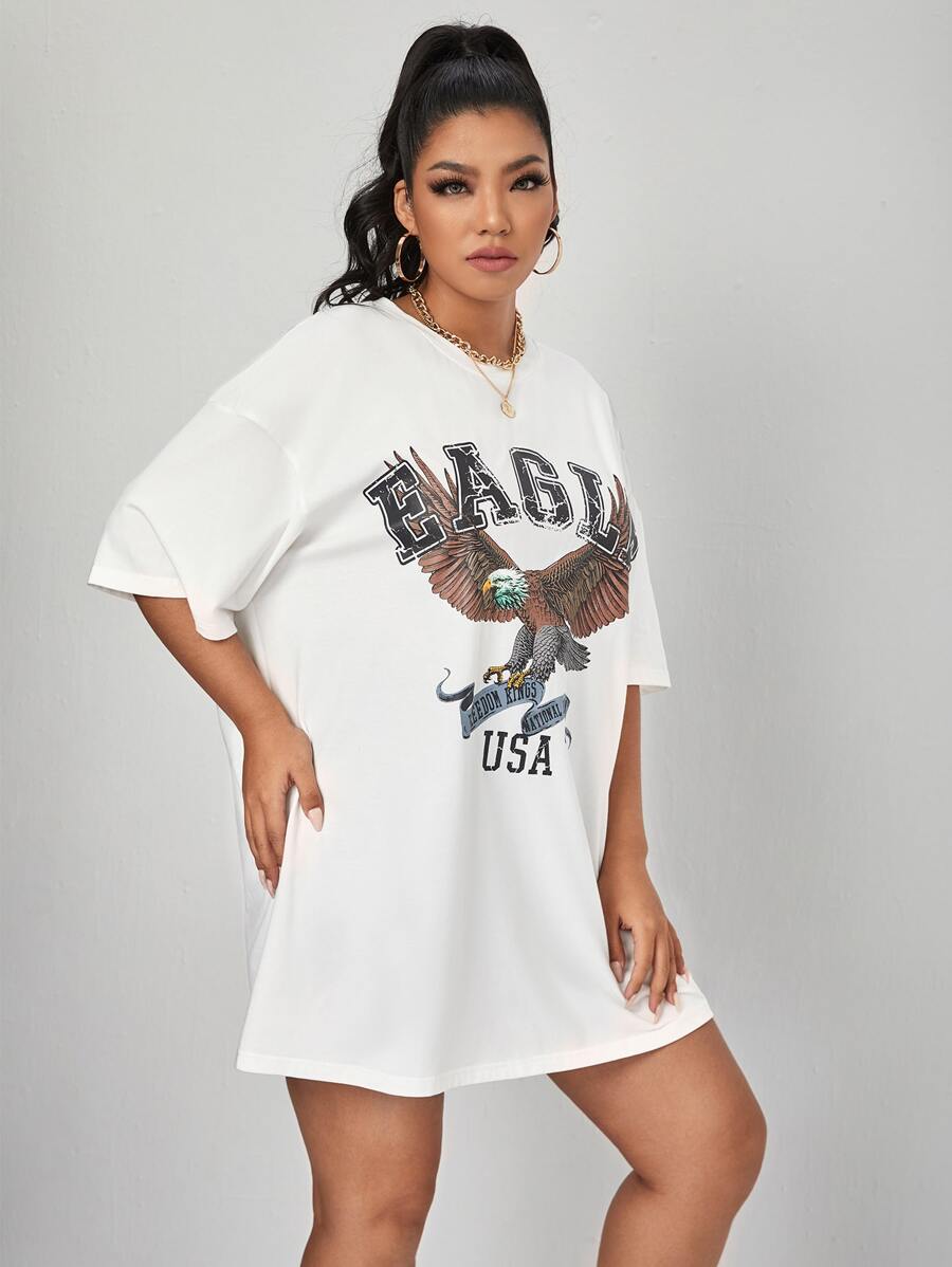 Plus Drop Shoulder Letter & Eagle Print Tee