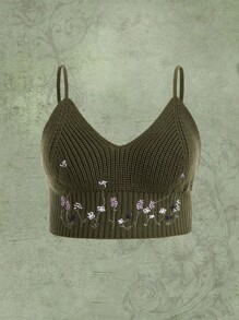 Fairycore Plus Floral Embroidery Cami Knit Top