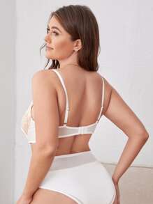 Plus Floral Embroidery Cut-out Underwire Teddy Bodysuit