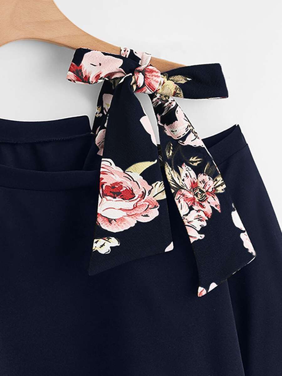 Plus Floral Print Knot Asymmetrical Neck Sweatshirt