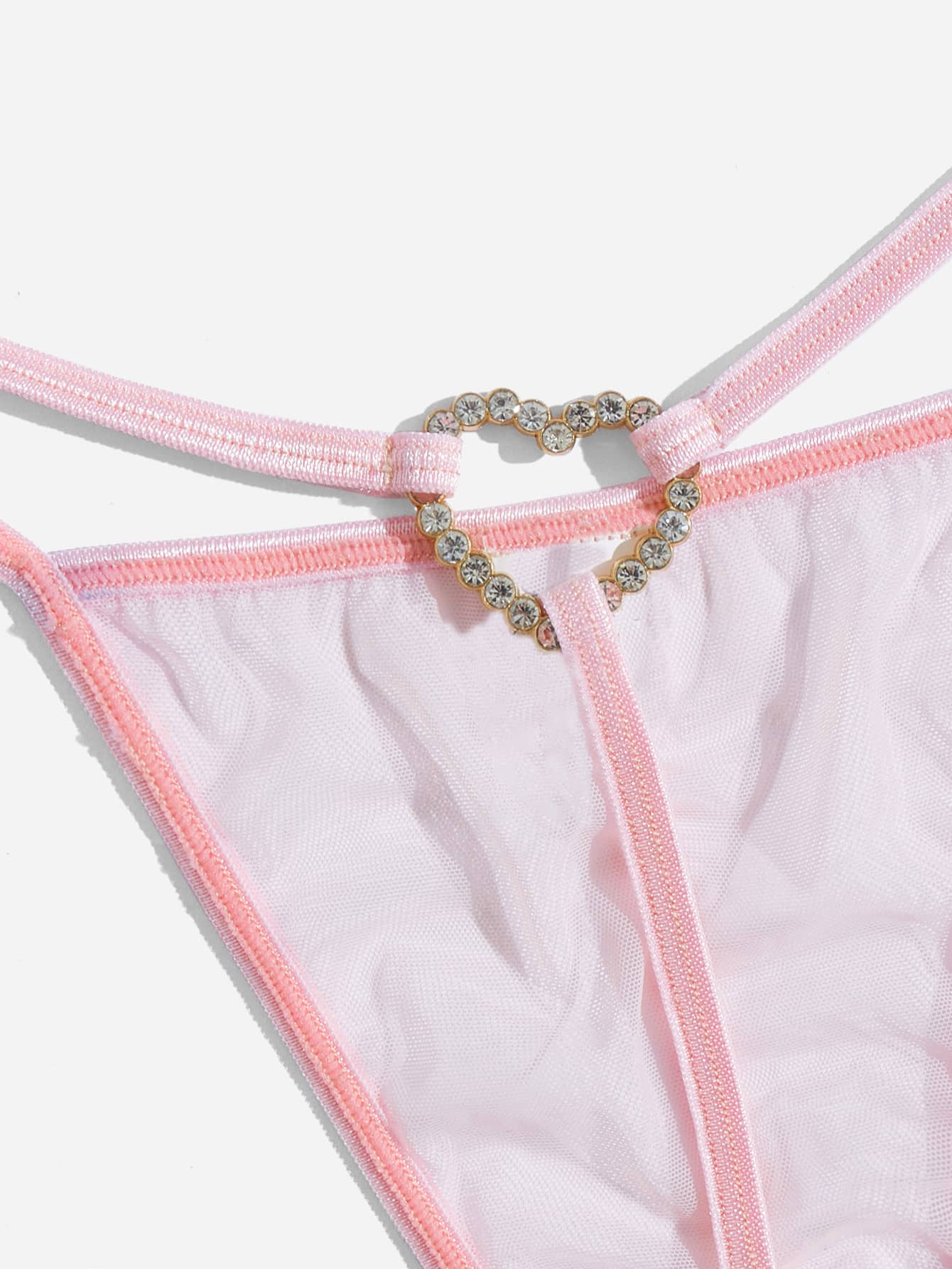 Plus Heart Rhinestone Detail Contrast Binding Mesh Thong