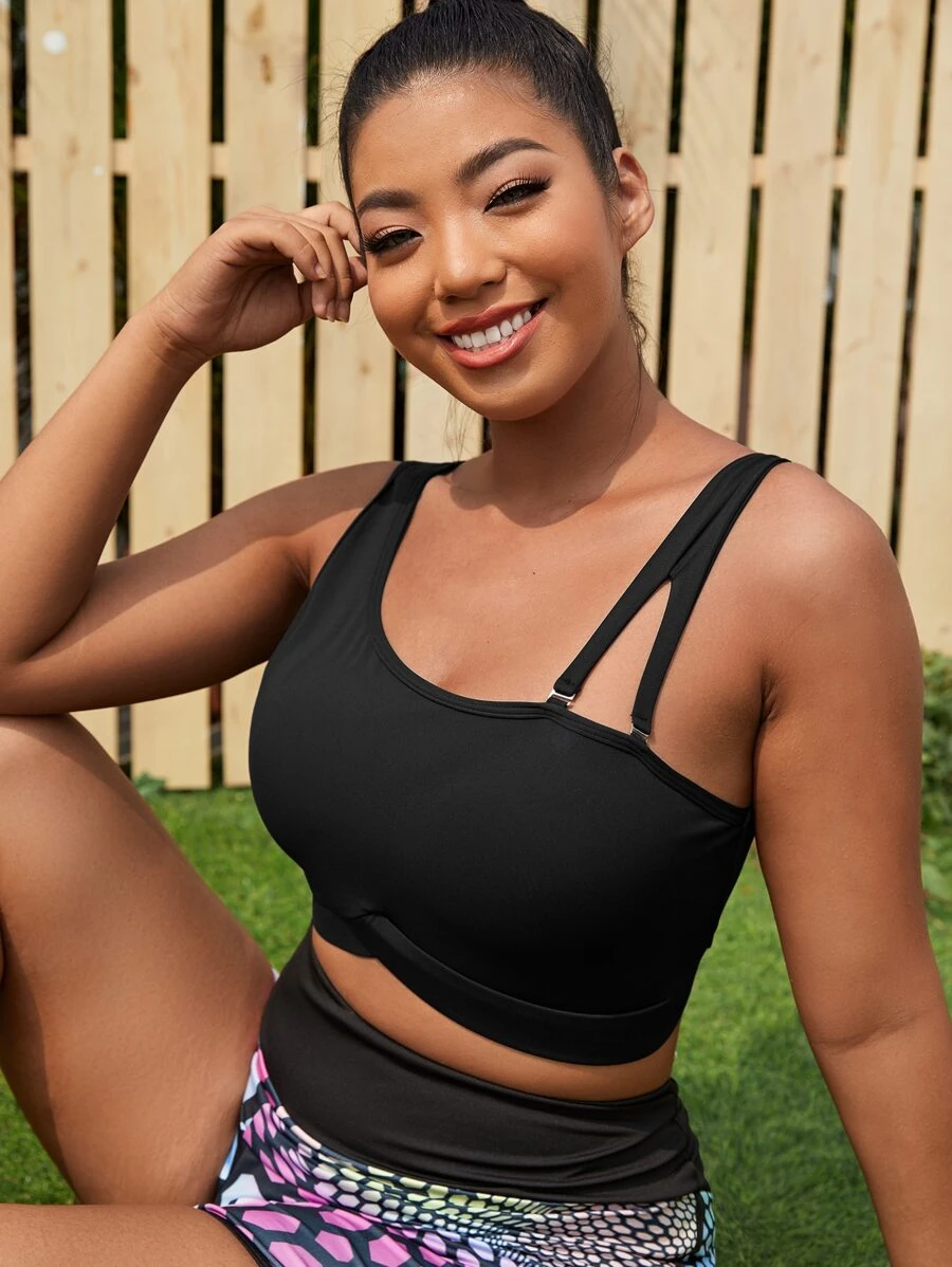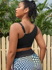 Plus High Stretch High Support Asymmetrical Neck Sports Bra