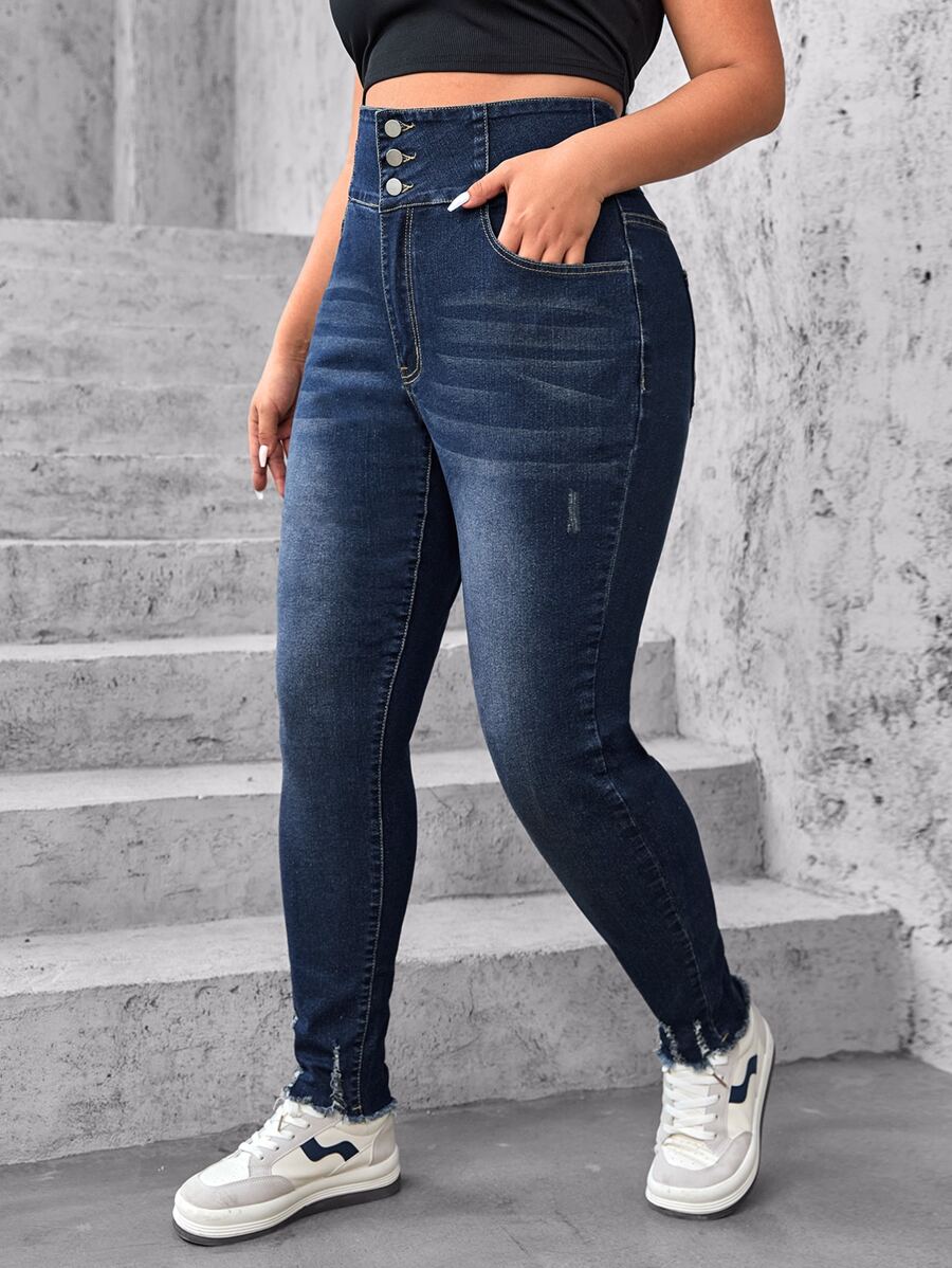 Plus High Waist Ripped Raw Trim Skinny Jeans