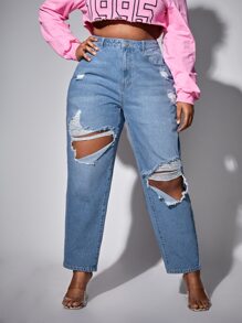 Plus High Waisted Ripped Mom Fit Jeans