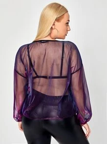 Plus Iridescent Sheer Mesh Top Without Bra