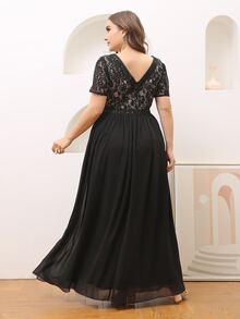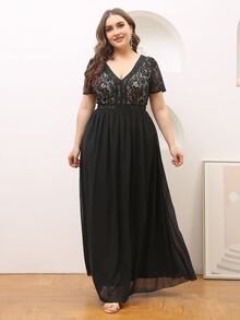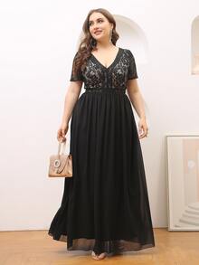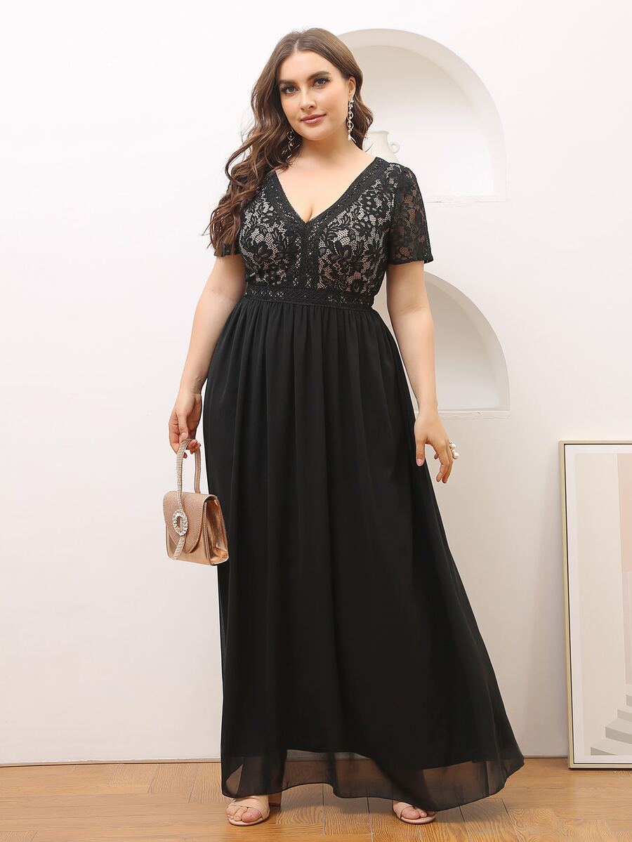 Plus Lace Panel Maxi Chiffon Dress