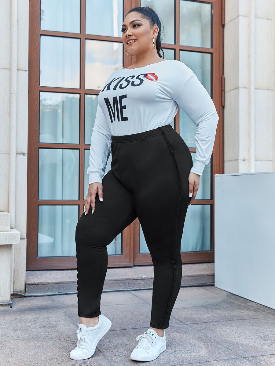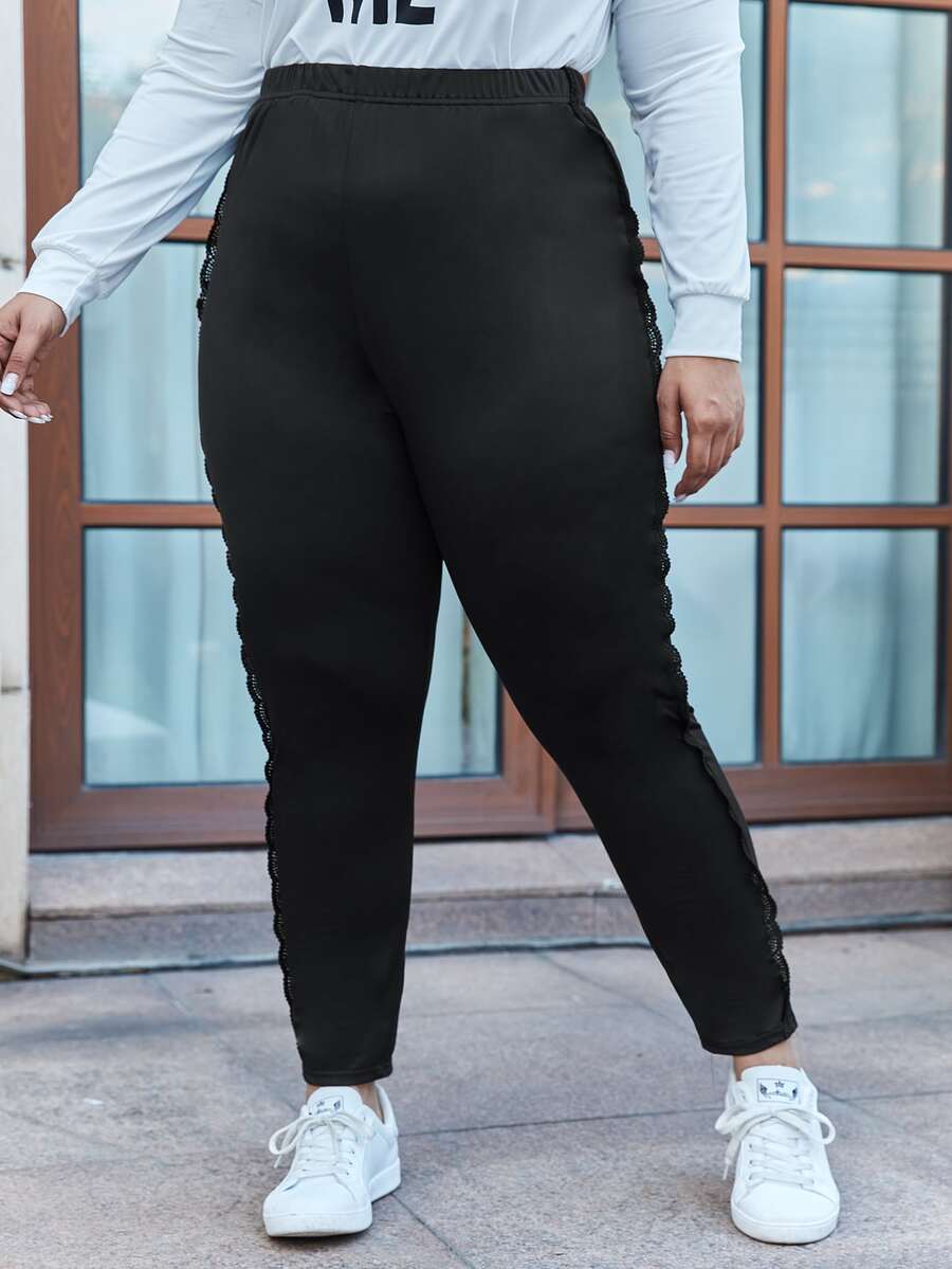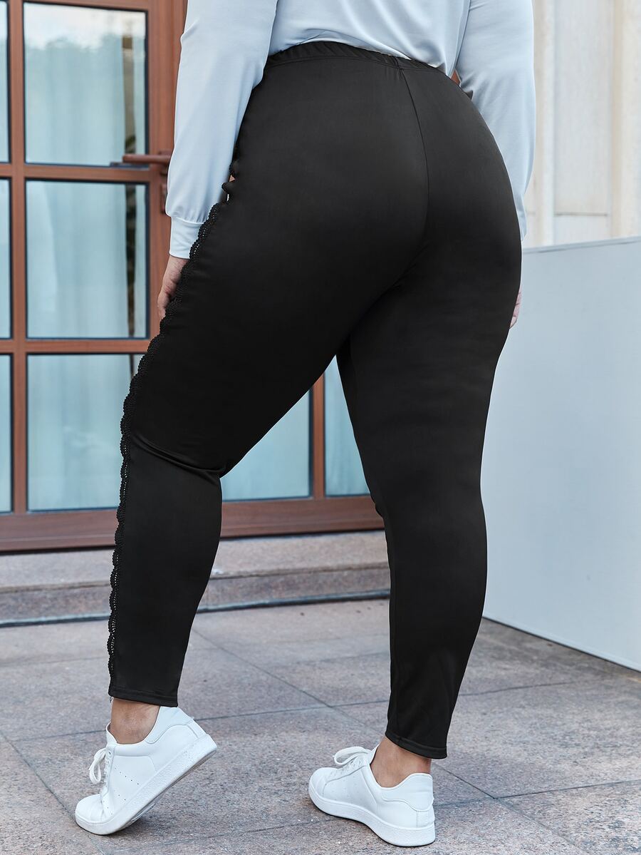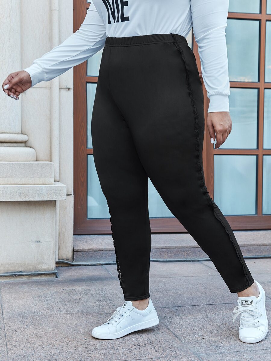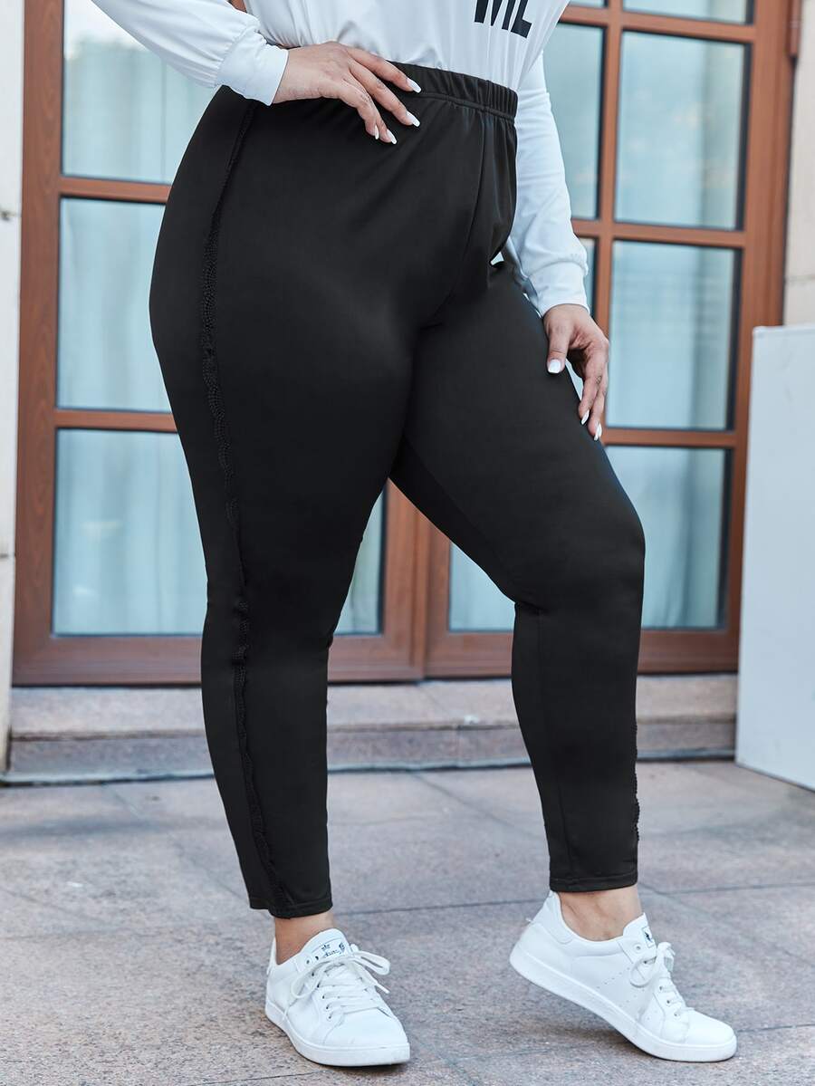 Plus Lace Trim Solid High Waist Leggings