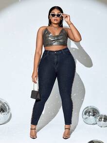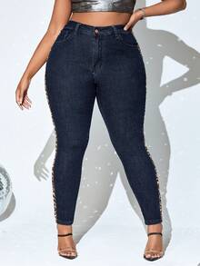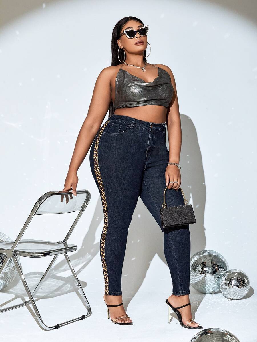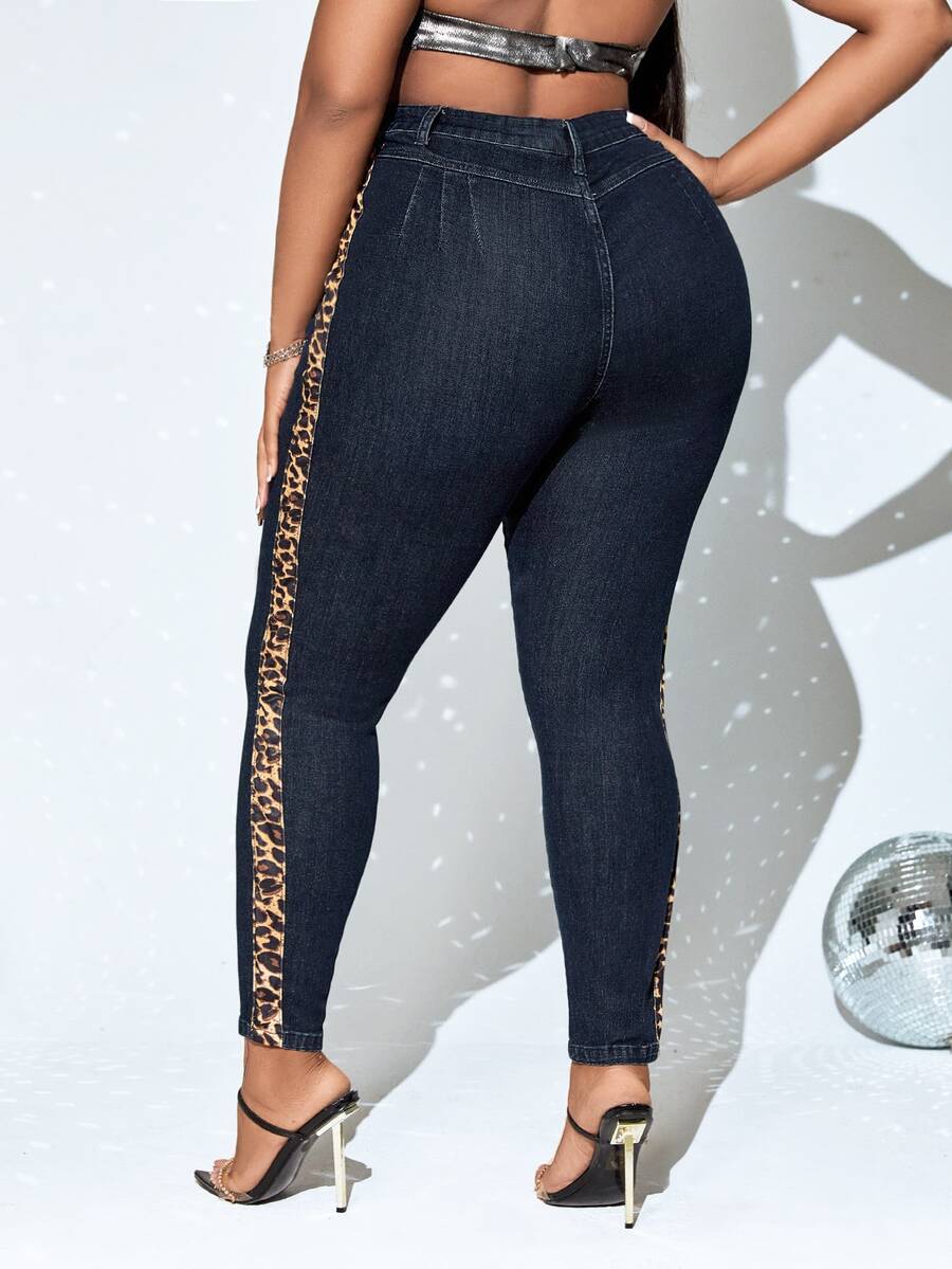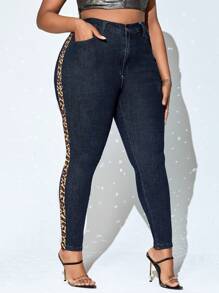 Plus Leopard Print Side Seam Skinny Jeans