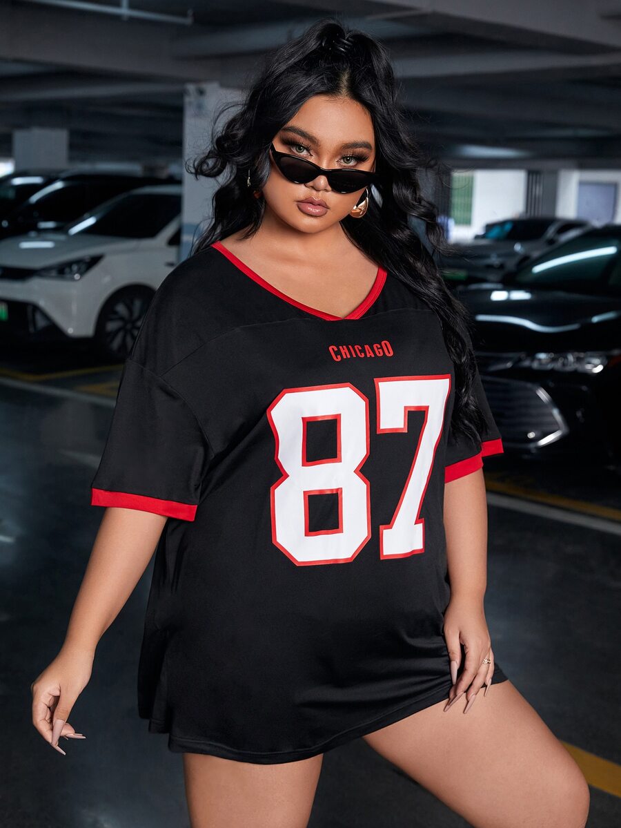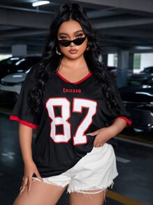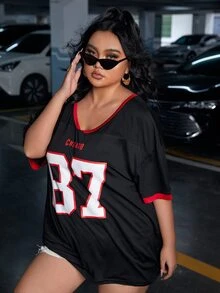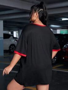 Plus Letter Graphic Contrast Trim Drop Shoulder Tee