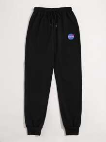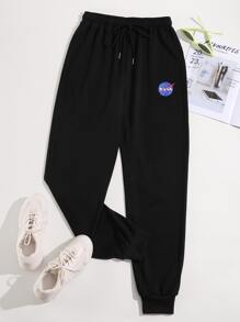 Plus Letter Graphic Drawstring Waist Sweatpants