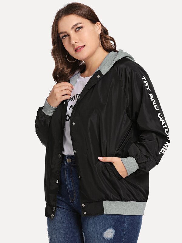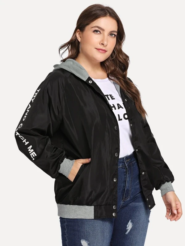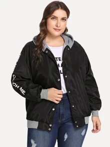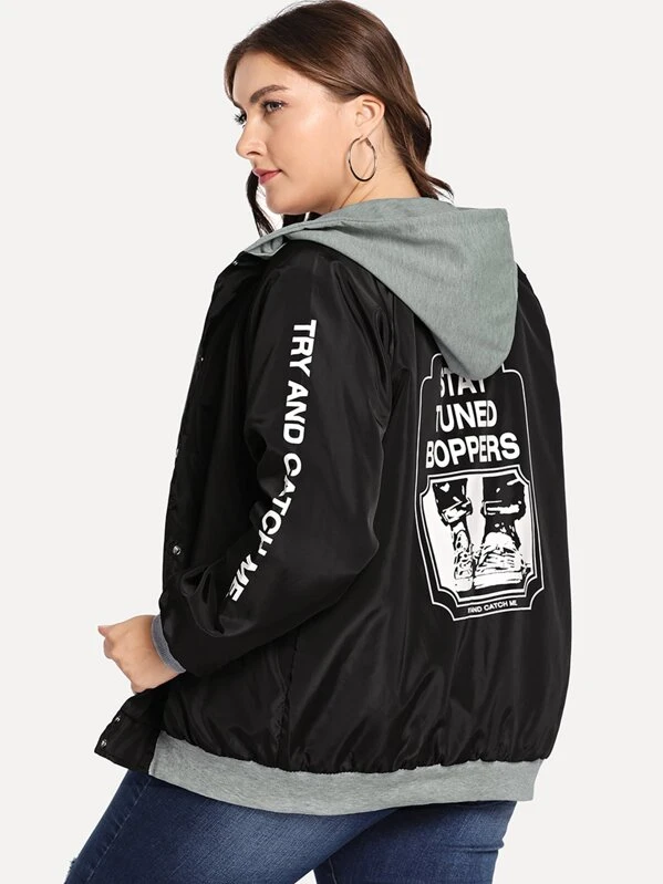 Plus Letter & Shoes Graphic Hoodie Jacket