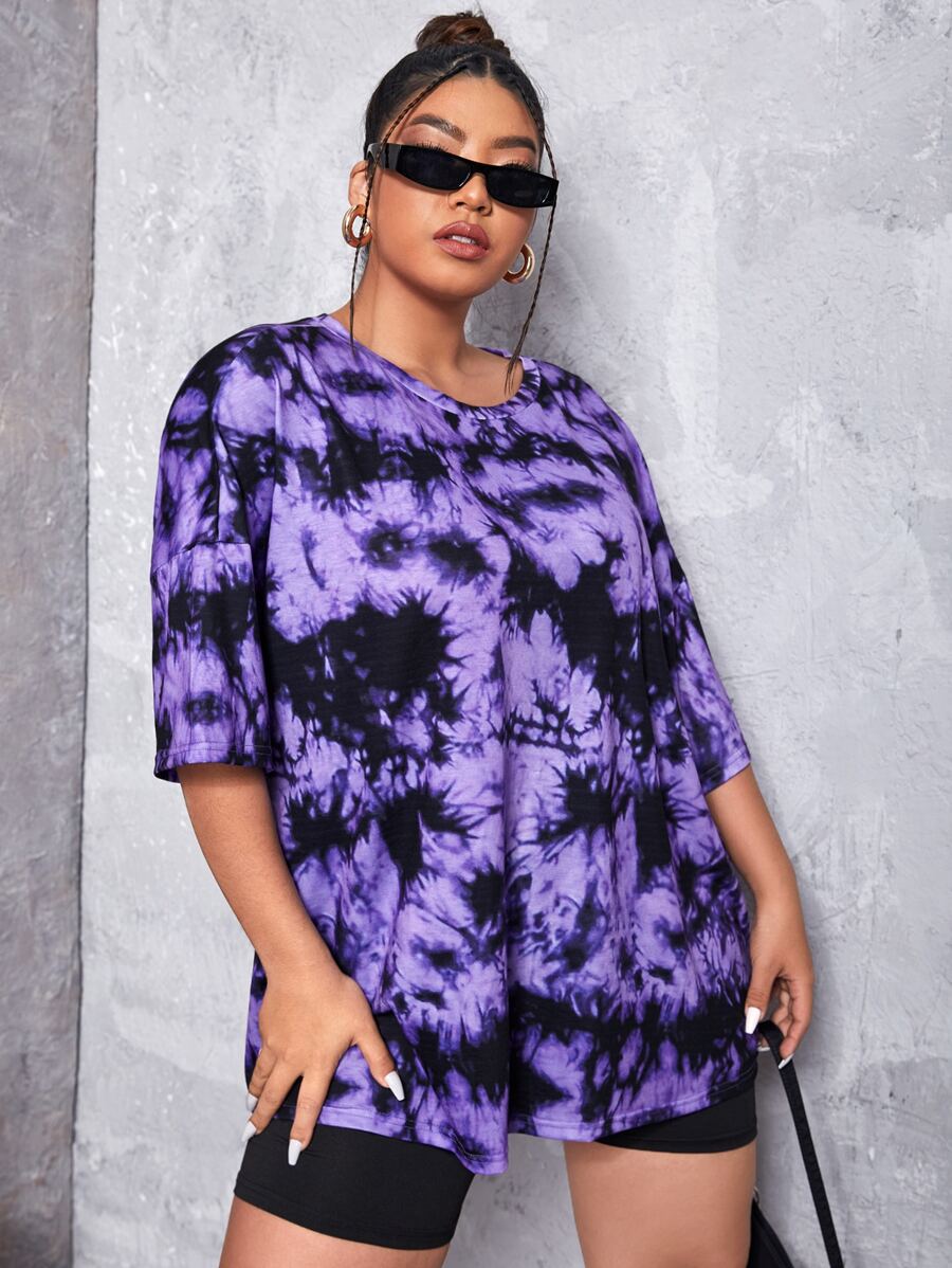 Plus Moon & Compass Print Tie Dye Drop Shoulder Tee