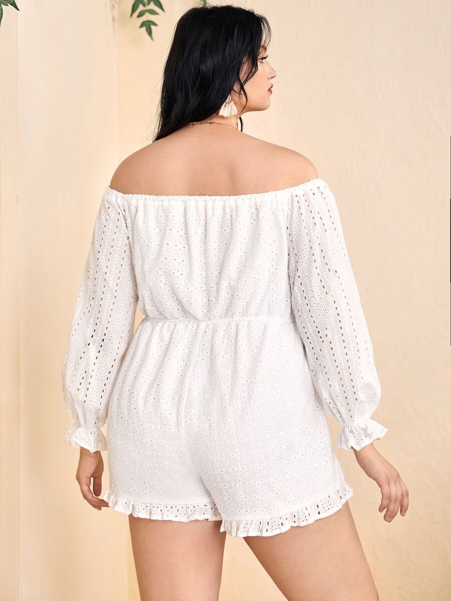 Plus Off Shoulder Tassel Tie Schiffy Romper