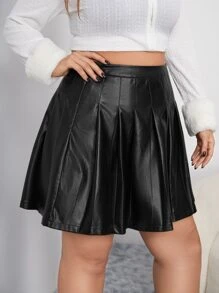 Plus PU Leather Pleated Skirt