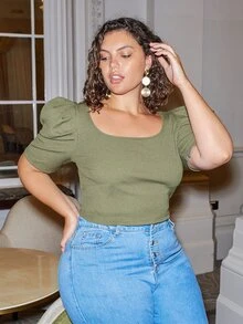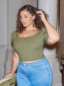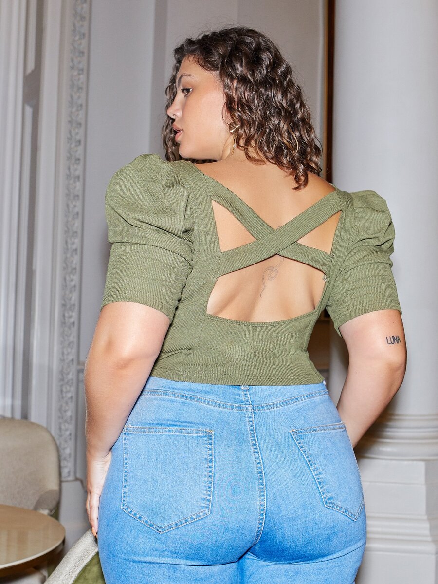 Plus Puff Sleeve Crisscross Back Top