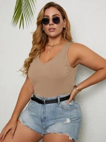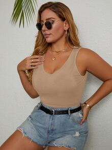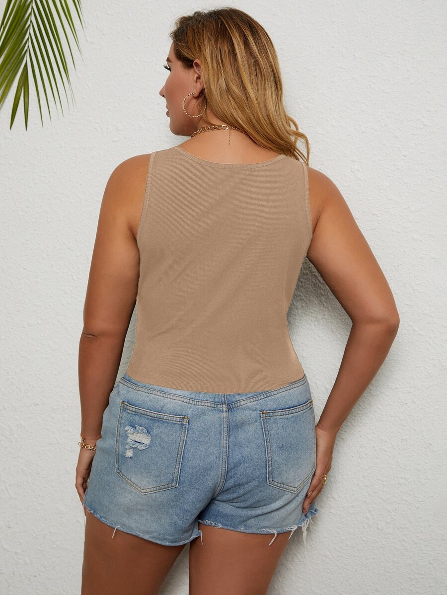 Plus Rib-Knit Scoop Neck Solid Tank Top