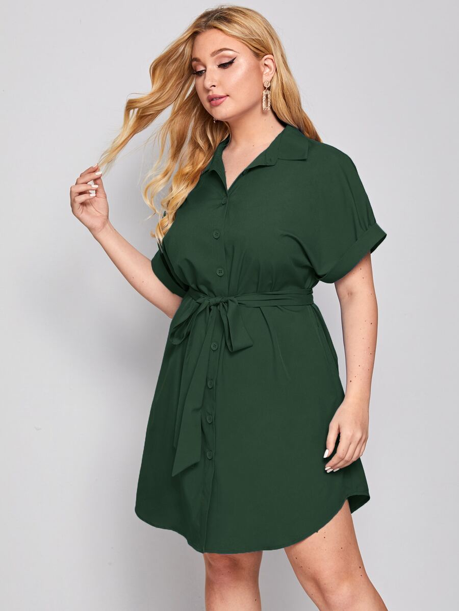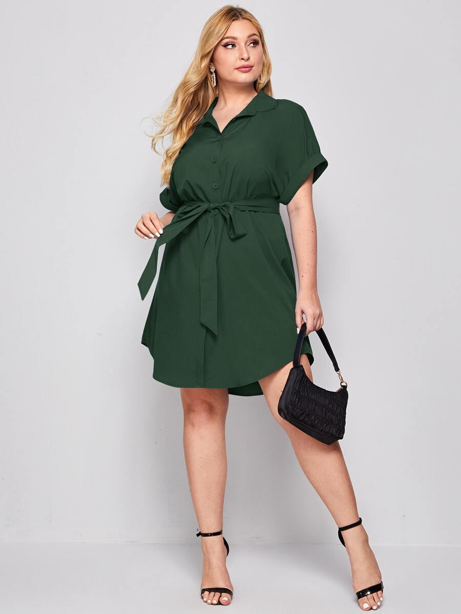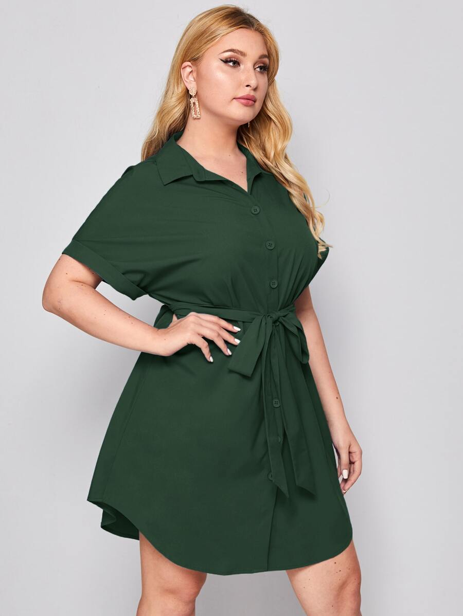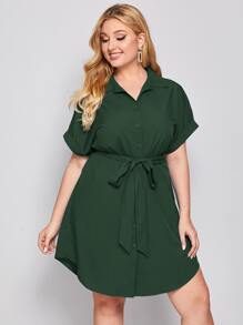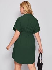 Plus Rolled Cuff Dolman Sleeve Curved Hem Shirt Dress