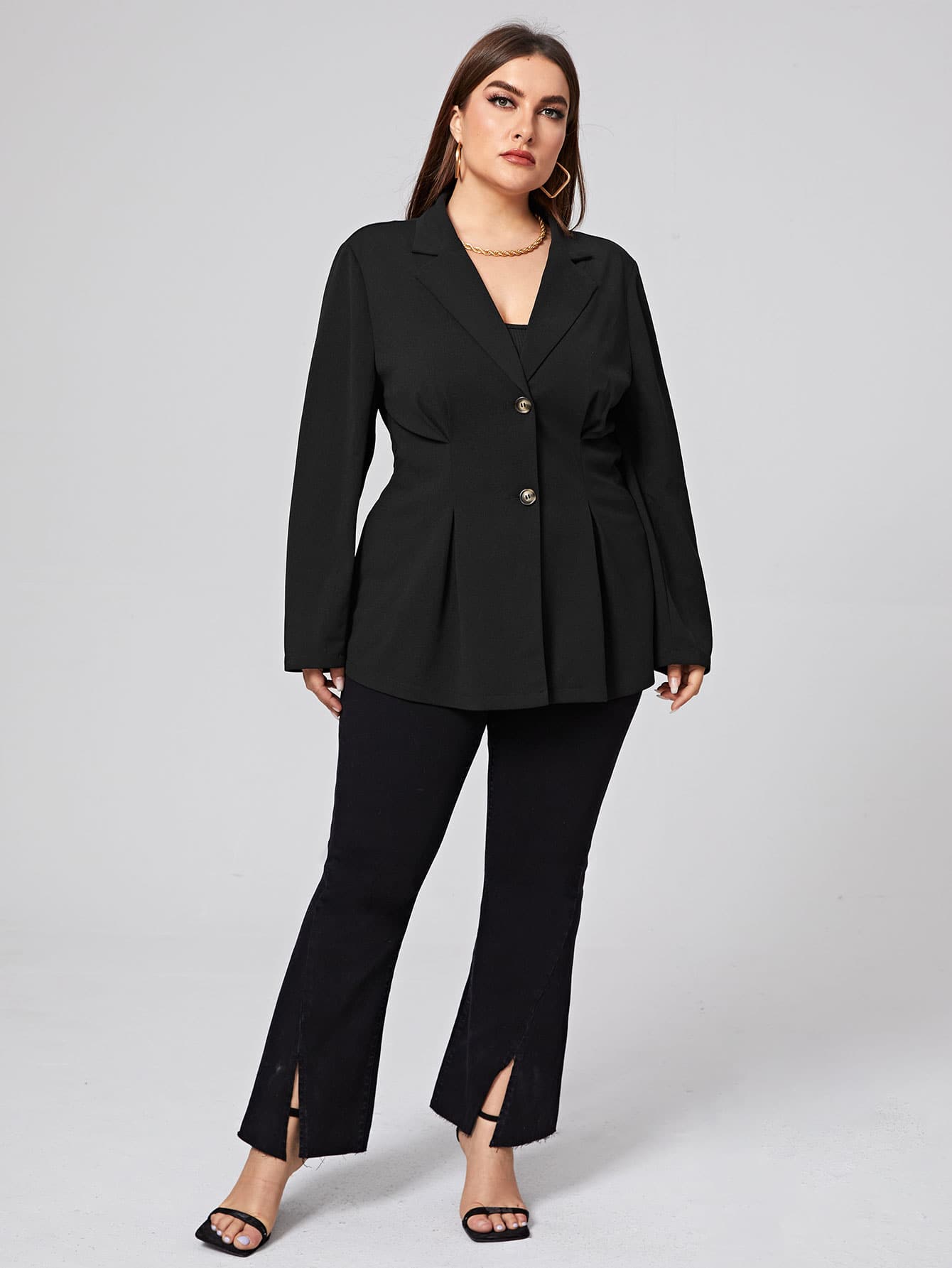 Plus Single Breasted Peplum Blazer