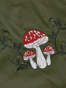 Fairycore Plus Size Fairycore Botanical Vine & Mushroom Embroidered Jumpsuit, Plus Size Autumn/Winter Overalls Embroidered Mushroom Jumpsuit