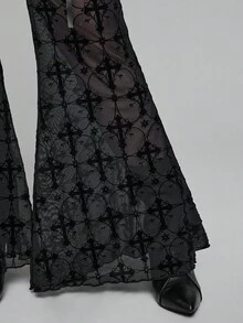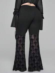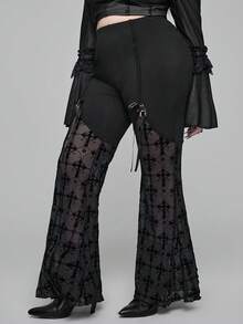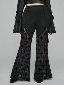 EDITION Plus Size Gothic Cross Lace Sheer Flare Pants